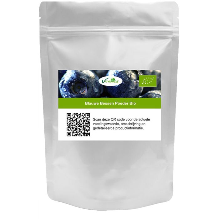100% biologische blauwe bessen poeder (Vaccinium Myrtillus), zonder vulmiddelen.