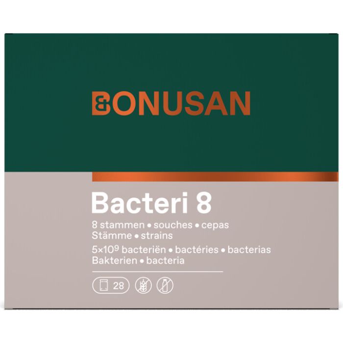 Bonusan Bacteri 8 bevat een zorgvuldig geselecteerde mix van acht verschillende probiotische bacteriestammen. Dit product is ontworpen om de darmflora te ondersteunen en een gezonde spijsvertering te bevorderen. Het is geschikt voor dagelijks gebruik en helpt bij het behoud van een evenwichtige microflora.