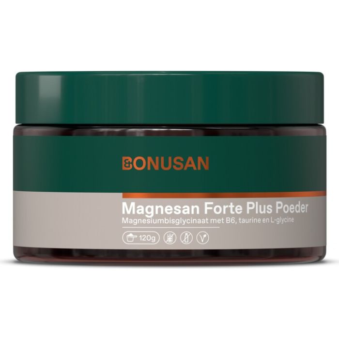Bonusan Magnesan Forte Plus is een hoogwaardig poeder met een combinatie van verschillende vormen van magnesium. Het is ontworpen voor optimale absorptie en ondersteuning van het zenuwstelsel. Dit product is vrij van toevoegingen en vulstoffen.