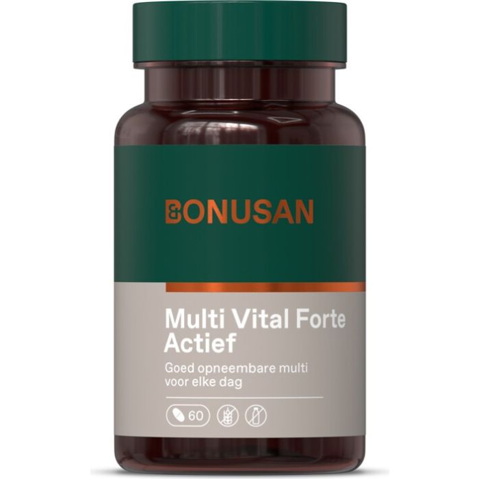 Multi Vital Forte Actief is een uitgebreide multivitamine met extra focus op actieve mensen. Het bevat belangrijke voedingsstoffen ter ondersteuning van energie en vitaliteit. Dit supplement is speciaal samengesteld voor een drukke levensstijl.