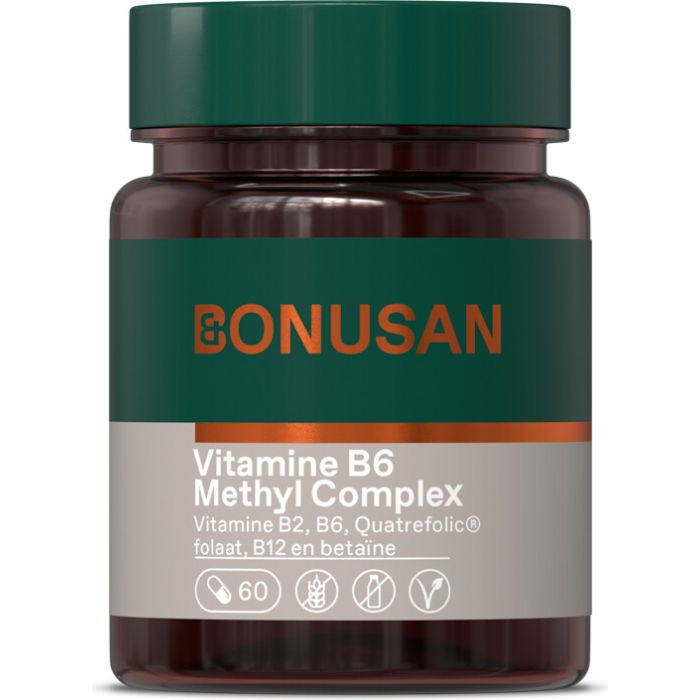 Bonusan Vitamine B6 Methyl Complex ondersteunt de normale werking van het zenuwstelsel en het immuunsysteem. Het product bevat een actieve vorm van vitamine B6 voor betere opname. Ideaal voor mensen die behoefte hebben aan extra ondersteuning.
