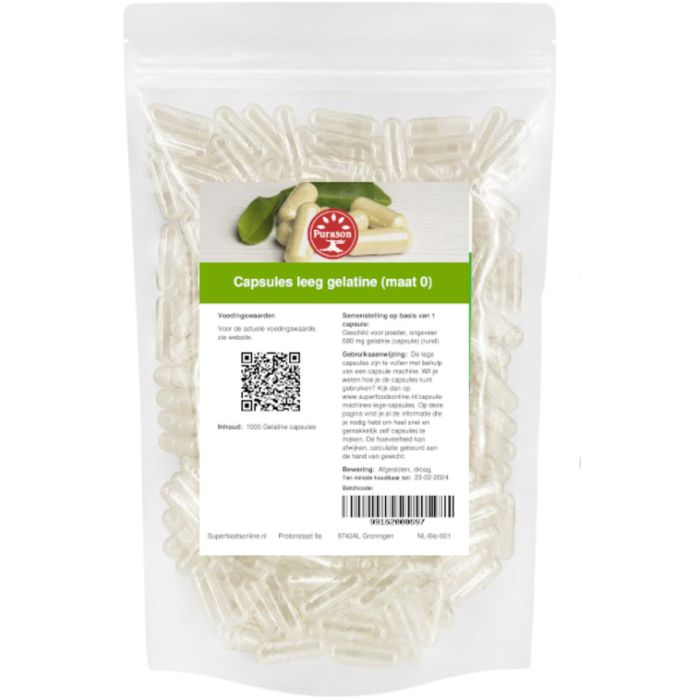 Gelatine (capsule) (rund) | Maat 0 geschikt voor poeder, ongeveer 680 mg |