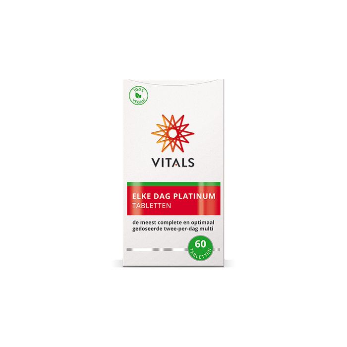Glycerol, Hydroxypropylcellulose, HPMC, Microkristallijne cellulose, Siliciumdioxide, Raapzaadolie geheel gehard, Calciumstearaat, Bètacaroteen (uit Dunaliella salina), Vitamine A (retinylacetaat), Vitamine B1 (thiamine HCl), Vitamine B2 (riboflavine-5’-fosfaat), Vitamine B3 (niacinamide), Vitamine B5 (calcium-D-pantothenaat), Vitamine B6 (pyridoxine-5’-fosfaat), Folaat (5-MTHF) (Quatrefolic®), Vitamine B12 (50% methyl-, 50% adenosylcobalamine), Biotine, Choline (cholinebitartraat), Vitamine C (magnesiumascorbaat), Vitamine D3 (cholecalciferol) (vegan, Vitamin D3V®), Vitamine E (D-alfa-tocoferylsuccinaat), Tocoferolen (Vitamine E), Vitamine K1 (fytomenadion), Vitamine K2 (menaquinon-7) (K2VITAL® Delta), Calcium (calciumcarbonaat) (uit rode alg) (Aquamin®), IJzer (ijzerbisglycinaat), Jodium (kaliumjodide), Kalium (kaliumcitraat), Koper (koperbisglycinaat), Magnesium (magnesiumhydroxide, magnesiumascorbaat) (Aquamin®), Mangaan (mangaanbisglycinaat), Molybdeen (natriummolybdaat), Selenium (L-selenomethionine), Zink (zinkbisglycinaat), Citrus Bioflavonoïden, Luteïne extract (Tagetes erecta), Zeaxanthine (esters) (Tagetes erecta), Meso-zeaxanthine (uit Tagetes erecta), Co-enzym Q10 (ubiquinon), Alfaliponzuur (R/S-vorm), PQQ (MGC-PQQ®), L-Taurine, L-Carnitine (acetyl-l-carnitine)
