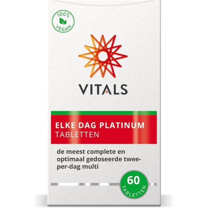 Glycerol, Hydroxypropylcellulose, HPMC, Microkristallijne cellulose, Siliciumdioxide, Raapzaadolie geheel gehard, Calciumstearaat, Bètacaroteen (uit Dunaliella salina), Vitamine A (retinylacetaat), Vitamine B1 (thiamine HCl), Vitamine B2 (riboflavine-5’-fosfaat), Vitamine B3 (niacinamide), Vitamine B5 (calcium-D-pantothenaat), Vitamine B6 (pyridoxine-5-fosfaat), Folaat (5-MTHF) (Quatrefolic®), Vitamine B12 (50% methyl-, 50% adenosylcobalamine), Biotine, Choline (cholinebitartraat), Vitamine C (magnesiumascorbaat), Vitamine D3 (cholecalciferol) (vegan, Vitamin D3V®), Vitamine E (D-alfa-tocoferylsuccinaat), Tocoferolen (Vitamine E), Vitamine K1 (fytomenadion), Vitamine K2 (menaquinon-7) (K2VITAL® Delta), Calcium (calciumcarbonaat) (uit rode alg) (Aquamin®), IJzer (ijzerbisglycinaat), Jodium (kaliumjodide), Kalium (kaliumcitraat), Koper (koperbisglycinaat), Magnesium (magnesiumhydroxide, magnesiumascorbaat) (Aquamin®), Mangaan (mangaanbisglycinaat), Molybdeen (natriummolybdaat), Selenium (L-selenomethionine), Zink (zinkbisglycinaat), Citrus Bioflavonoïden, Luteïne extract (Tagetes erecta), Zeaxanthine (esters) (Tagetes erecta), Meso-zeaxanthine (uit Tagetes erecta), Co-enzym Q10 (ubiquinon), Alfaliponzuur (R/S-vorm), PQQ - Pyrrolochinoline chinon-disodiumzout (Pyrroloquinoline quinone) (MGC-PQQ®), L-Taurine, L-Carnitine (acetyl-l-carnitine)