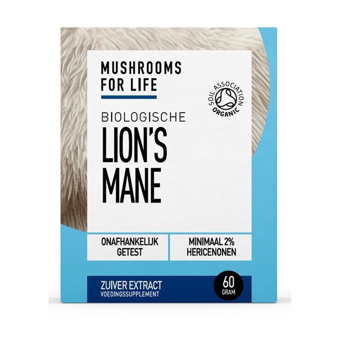 | Lion’s Mane dual extract (Hericium erinaceus) (vruchtlichaam) (2% hericenonen) (biologisch) | 1000 mg |
