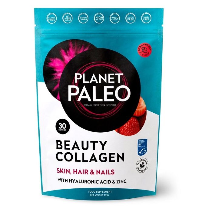 Collageen (collageen hydrolisaat) (vis) (type I) (MSC gecertificeerd), Aardbeien poeder (Fragaria vesca) (vrucht) (biologisch), Duindoorn (bes) (sea buckthorn) (biologisch), Gotu Kola (Centella asiatica) (Mandukaparni) (blad), Rode biet (Beta vulgaris) (biologisch), Hyaluronzuur, Vitamine C (magnesiumascorbaat), Bamboe extract, Zink (zinkpicolinaat), Rutine, Biotine