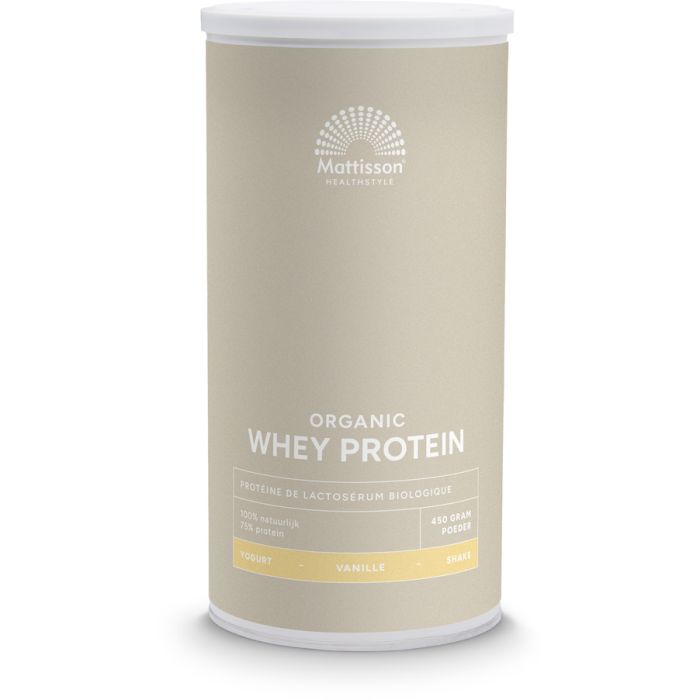 Biologische wei-eiwitconcentraat, natuurlijke vanille-aroma, biologische stevia-extract.