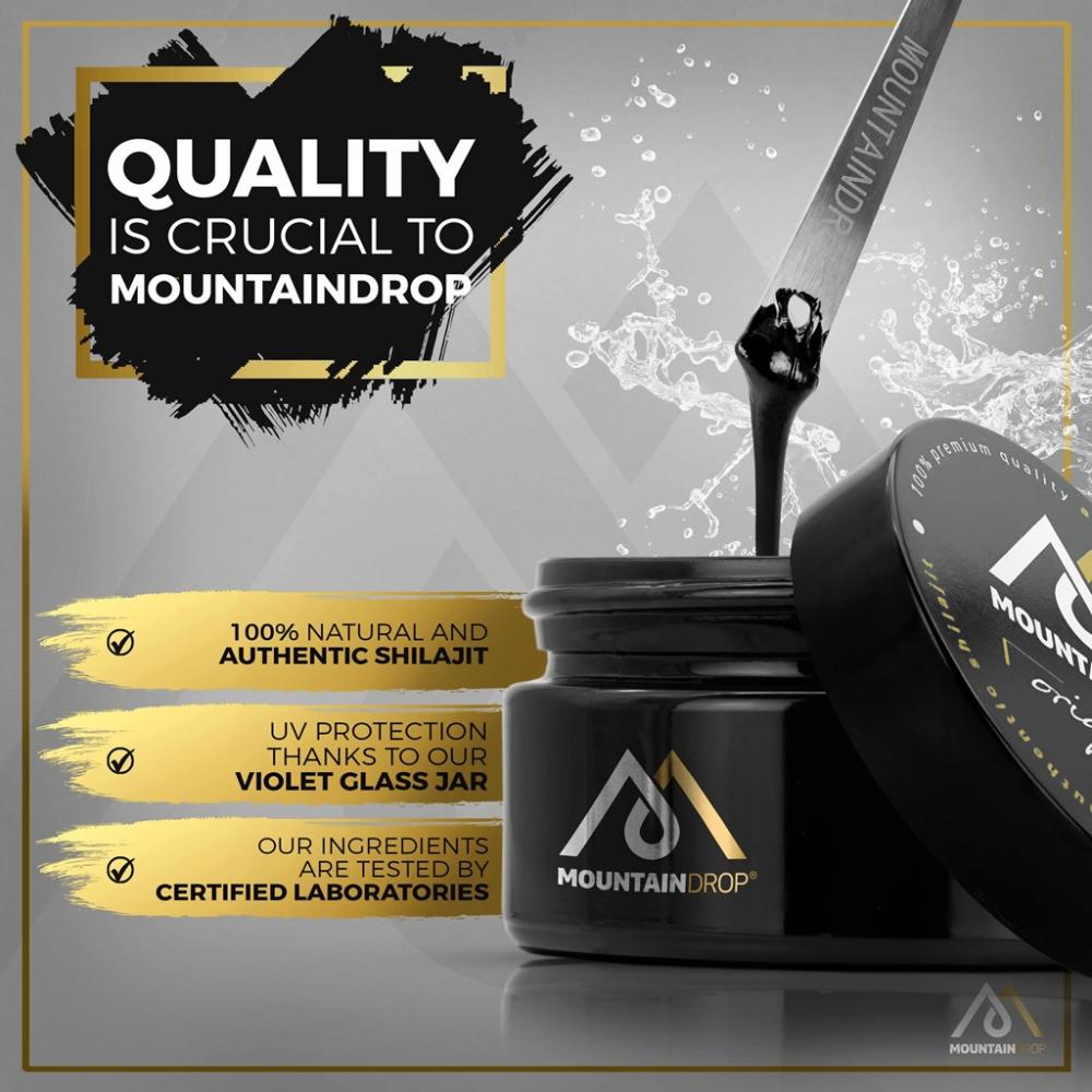Mountaindrop biedt 100% pure shilajit, gewonnen uit de ongerepte hoogten van het Altai-gebergte, gelegen op de grenzen van Kazachstan, Rusland, Mongolië en China. Shilajit, ook bekend als mumijo, is een natuurlijke substantie die al eeuwenlang wordt gebruikt in de Ayurveda en lokale geneeskunde in Centraal-Azië. Het is rijk aan meer dan 85 mineralen en sporenelementen in ionische en organische vorm, evenals vele vitamines zoals A, E, B1, B2, B3, B6, B12 en C. ​