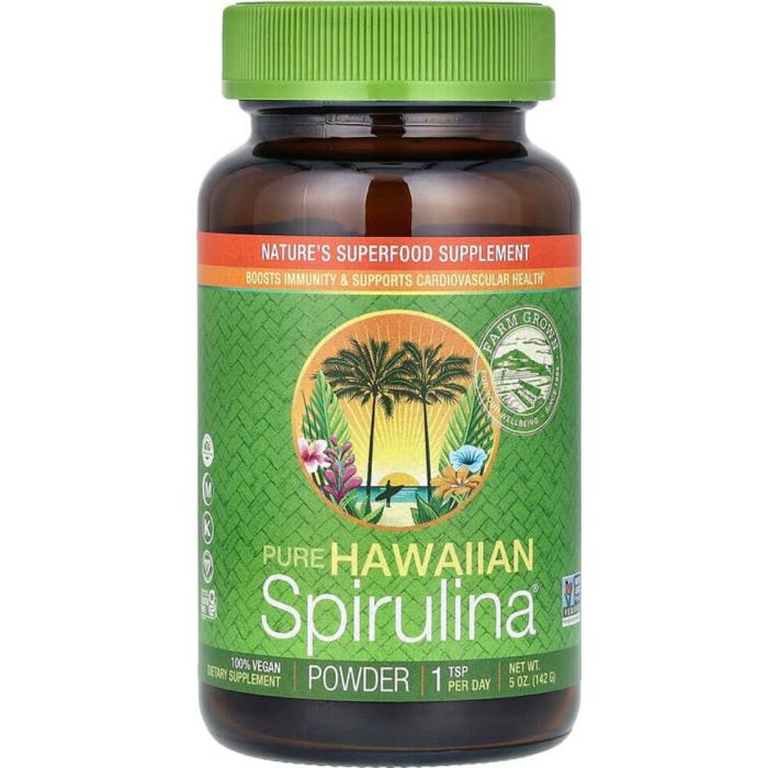 Het is de enige Spirulina die wordt geteeld in een biologisch veilige zone die vrij is van herbiciden en pesticiden aan de zonnige Kona-kust van Hawaï.
