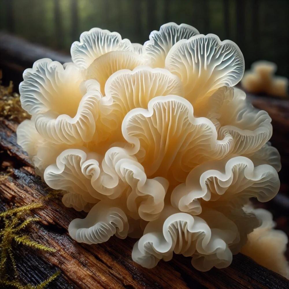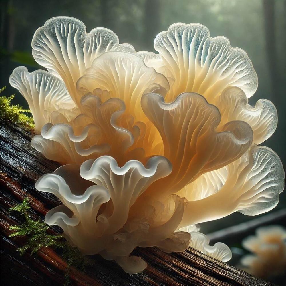 Tremella fuciformis, of sneeuwpaddenstoel, valt op door zijn doorschijnende, witte, golvende structuur die lijkt op ijskristallen. Hij groeit parasitair op andere schimmels op loofbomen in tropische en subtropische gebieden, vooral in Azië. Door kweek op houtsubstraten is hij wereldwijd beschikbaar. Met zijn zachte, gelatinachtige textuur en lichte smaak wordt hij veel gebruikt in Aziatische soepen en zowel zoete als hartige gerechten.