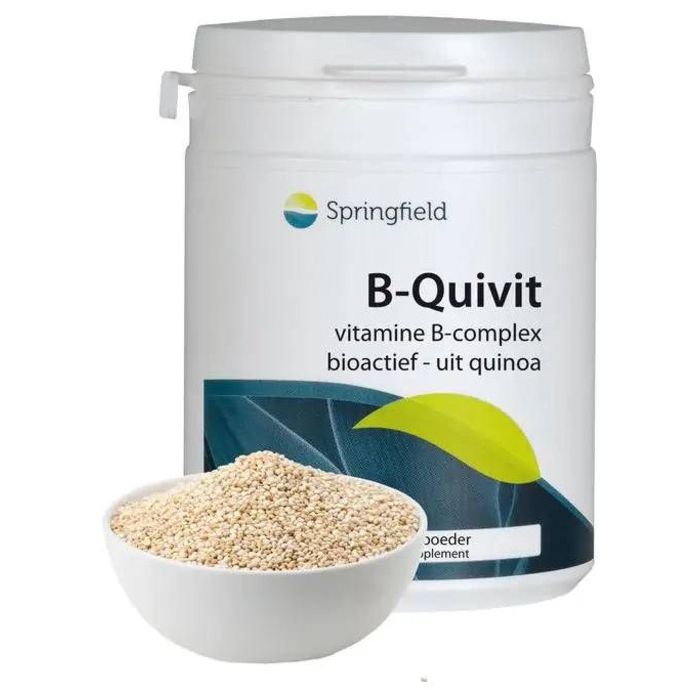 Quinoakiempoeder met biologisch actieve B-vitaminen, Dit bevat:, Vitamine B1, Vitamine B2, Vitamine B3, Vitamine B6, Vitamine B5, Biotine, Foliumzuur, Vitamine B12