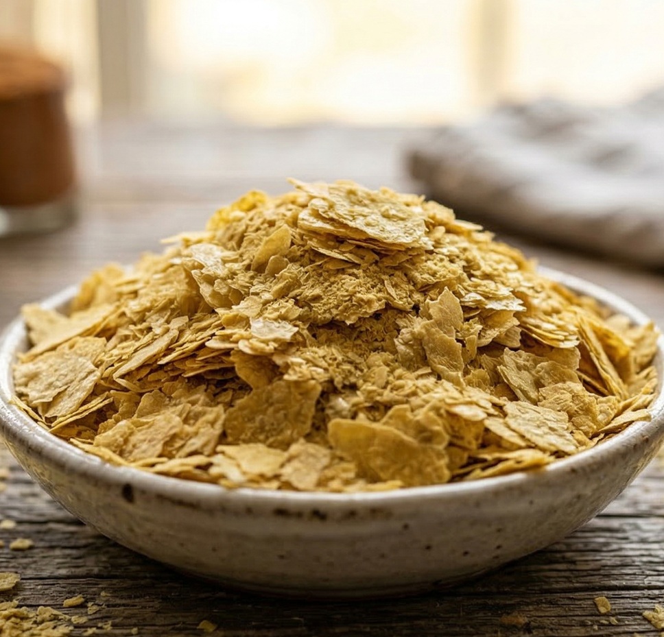 Als alternatief voor kaas bieden gistvlokken een vergelijkbare hartige smaak zonder dierlijke ingrediënten.