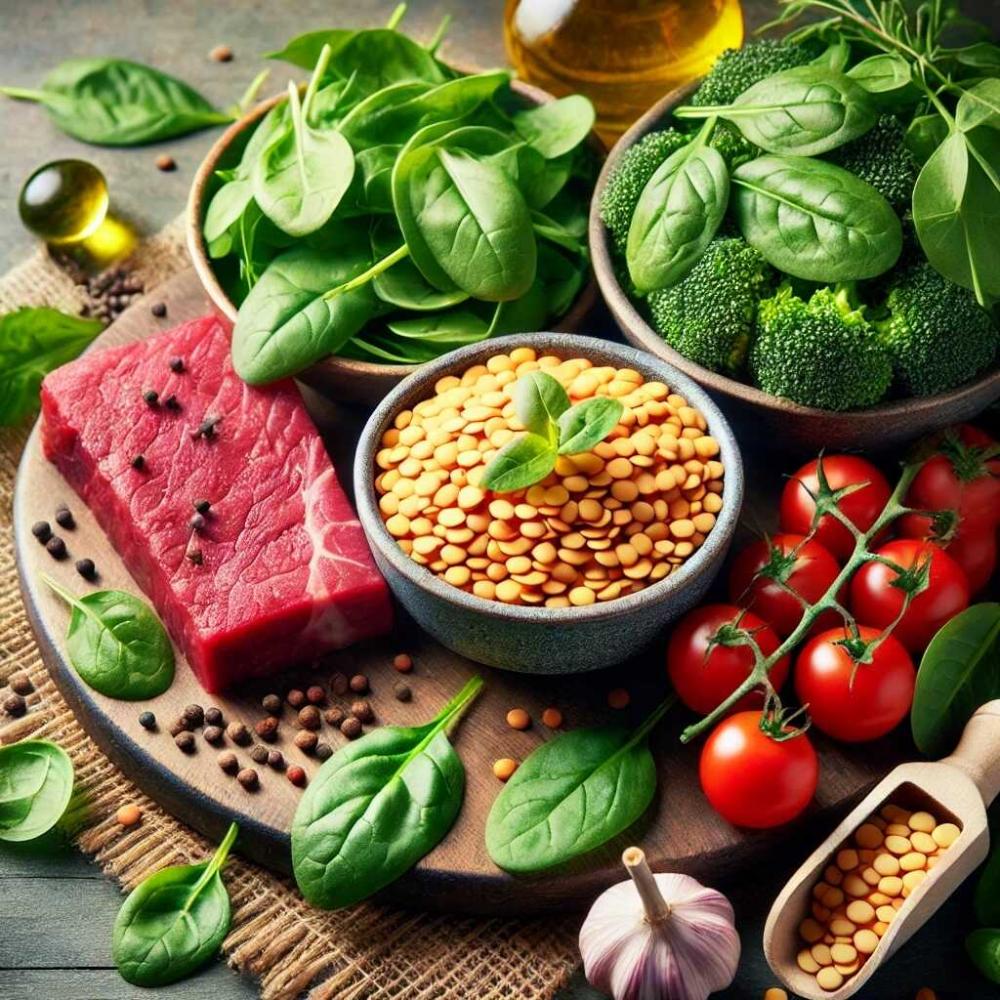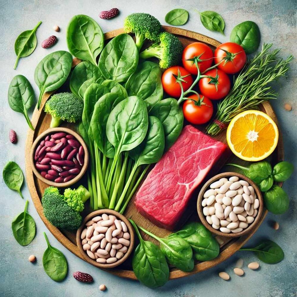 De beste voedselbronnen zijn rood vlees, donkergroene bladgroenten en bonen. IJzertekort kan leiden tot bloedarmoede, die kan worden behandeld met orale ijzersupplementen of een verhoogde inname van ijzerrijk voedsel.